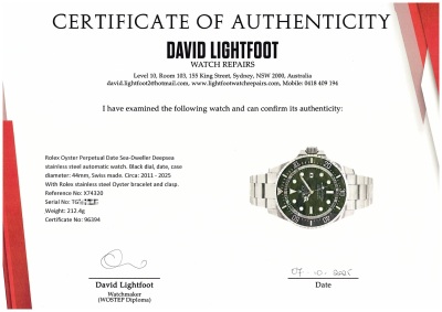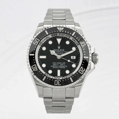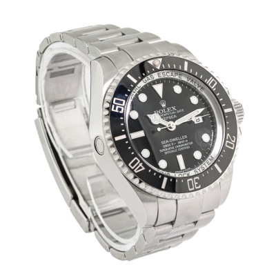 Rolex Oyster Perpetual Date Sea-Dweller Deepsea stainless steel automatic mens watch. Black dial, date, case diameter: 44mm, wrist size: 20.5cm, Swiss made. Ref# 116660. Circa: 2011 - 2025. With Rolex stainless steel Oyster bracelet and clasp. With Certificate of Authenticity, Rolex International Warranty card dated 26/02/2016 and Rolex box. 3 month FSA warranty. Weight: 212.4g (Pre-owned)