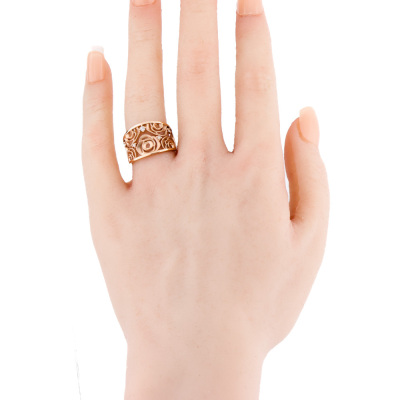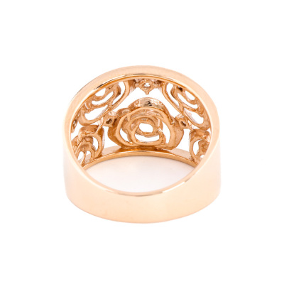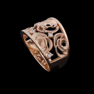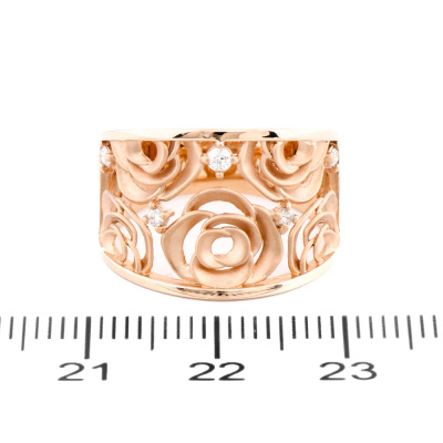 Rose design Diamond ring with 5 round Natural Diamond of 0.10ct. 18ct rose gold. Ring size: L1/4. Band width: 4.7mm - 7.4mm. Weight: 5.2. (pre-owned)