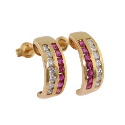 Ruby & Diamond Earrings 18ct Yellow Gold