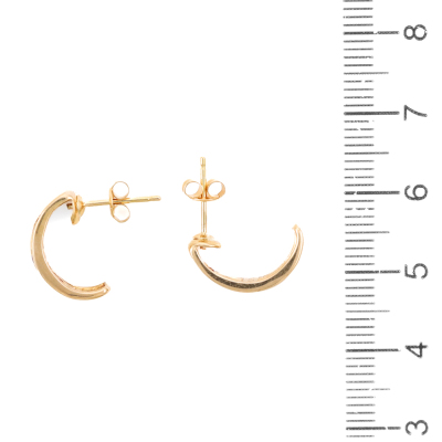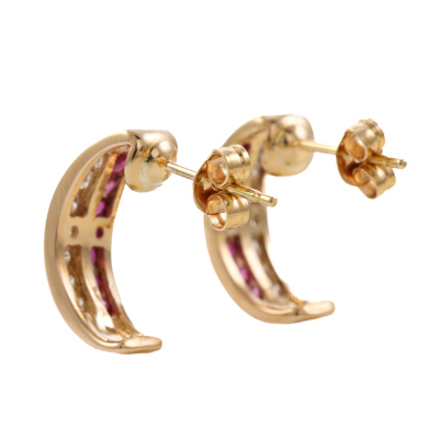Ruby and Diamond earrings with round Natural Rubies totalling 0.42ct and round Natural Diamonds totalling 0.28ct (Estimated grading: H-I SI). 18ct yellow gold with 18ct yellow gold backs. Weight: 3.0g. (Pre-owned)