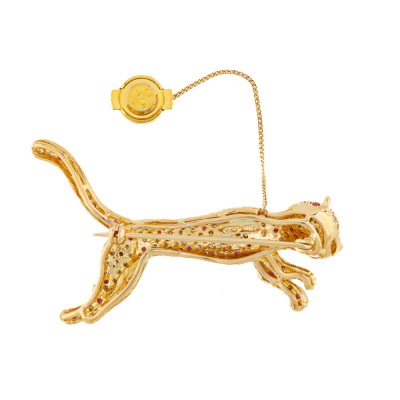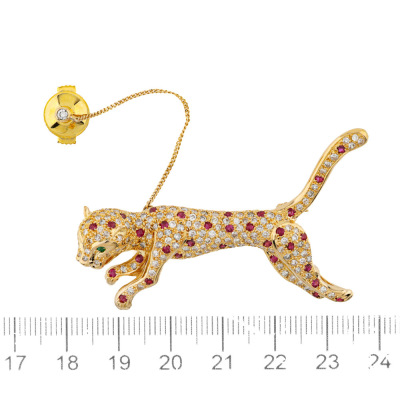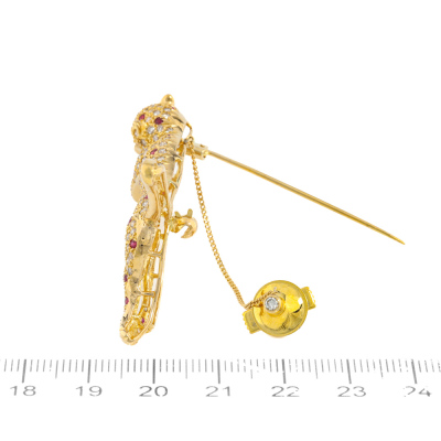 Ruby & Diamond Panther Brooch 18ct Gold 17g