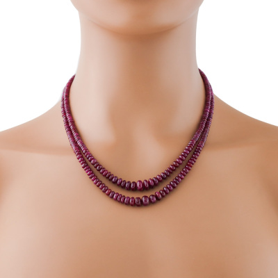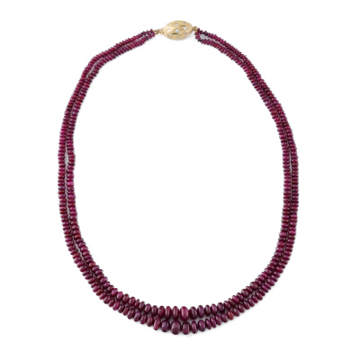 Ruby Bead Necklace with Diamond Set Clasp