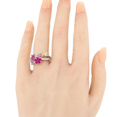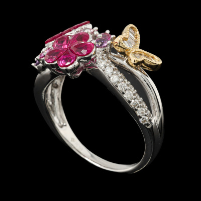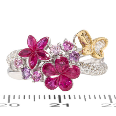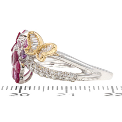 Ruby, Sapphire & Diamond Flower & Butterfly Ring