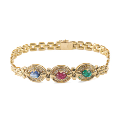 Ruby, Sapphire, Emerald and Diamond Bracelet