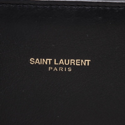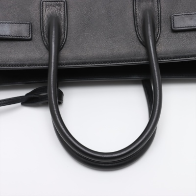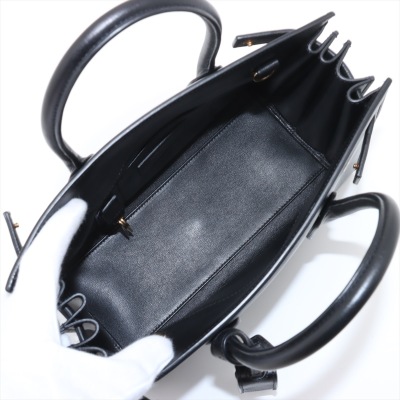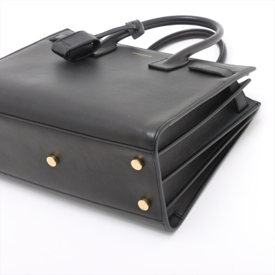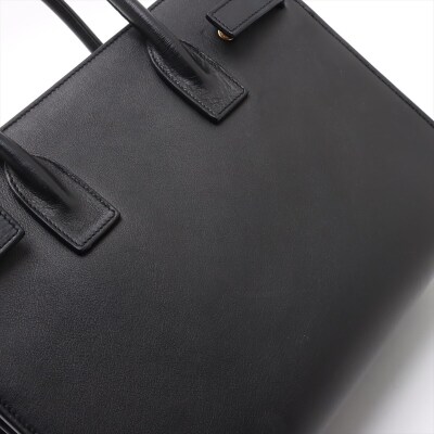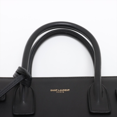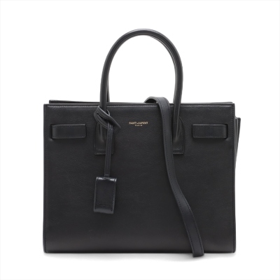Saint Laurent Baby Sac De Jour bag in black smooth calfskin leather. Featuring gold-toned hardware, dual top leather handles, accordion sides, and a detachable leather encased padlock. The top opens to a black leather interior with a patch pocket. Approximate dimensions: 26cm(L) x 20cm(H) x 12cm(D), handle drop 9cm, detachable & adjustable shoulder strap drop 58cm. Accompanied by a Saint Laurent dustbag and keys. With Entrupy Certificate of Authenticity.