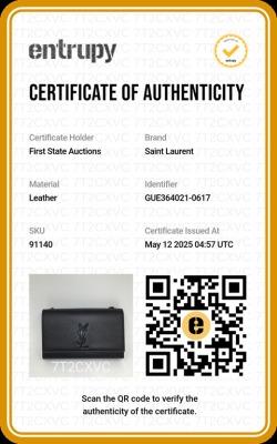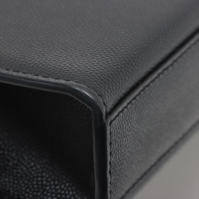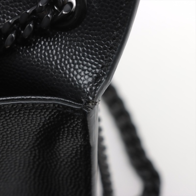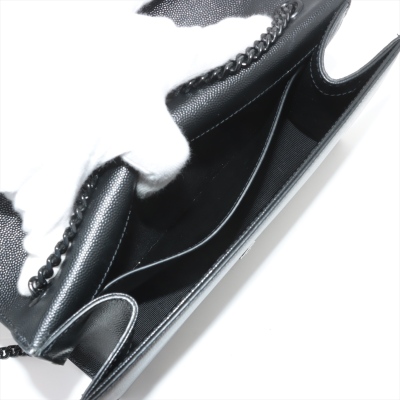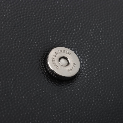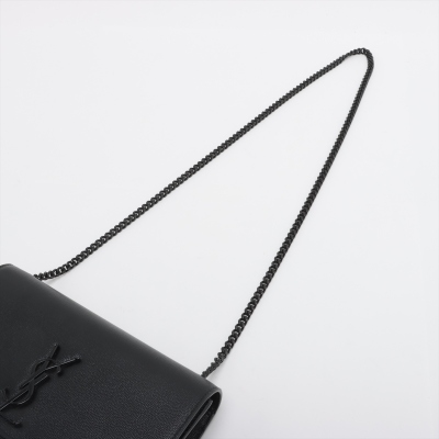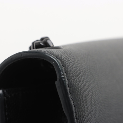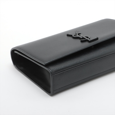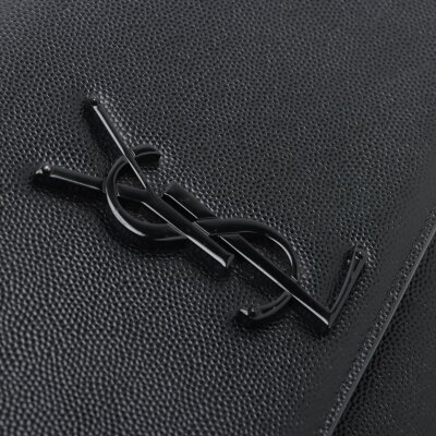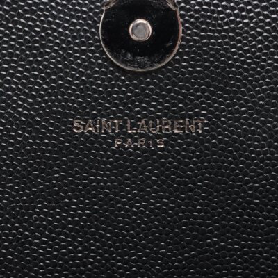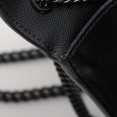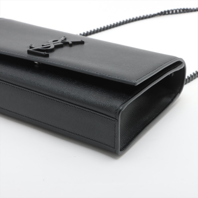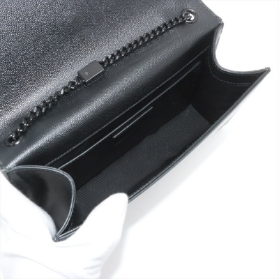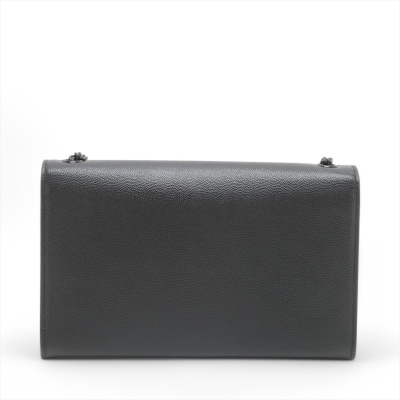 Saint Laurent medium Kate shoulder bag in black textured leather. Featuring black-toned hardware, single sliding chain shoulder strap, and black 'YSL' logo plaque at front. The flap with magnetic button closure open to a black textile interior with a patch pocket. Approximate dimensions: 24cm(L) x 15cm(H) x 5cm(D), single chain drop 49cm. With Entrupy Certificate of Authenticity. (Pre-owned)