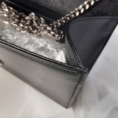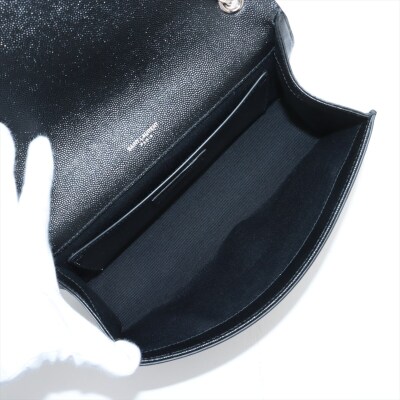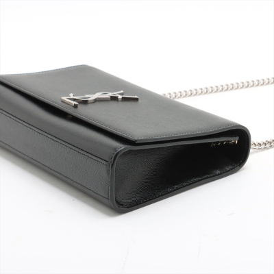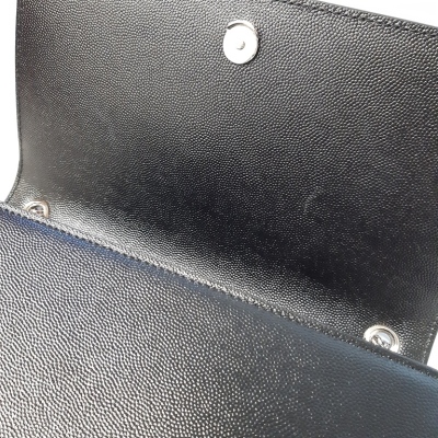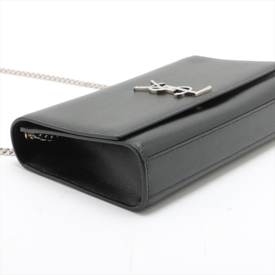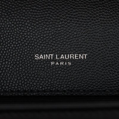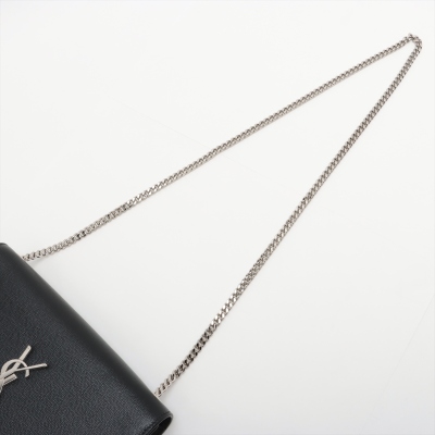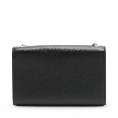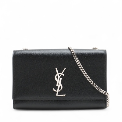 Saint Laurent medium Kate shoulder bag in black grainy leather. Featuring silver-toned hardware, fold over flap with 'YSL' logo plaque, and with magnetic snap closure at front. This opens to a black fabric interior with a patch pocket. Approximate dimensions: 24cm(L) x 15.5cm(H) x 5.5cm(D), strap drop 49.5cm. Accompanied by a YSL dust bag. With Entrupy Certificate of Authenticity. (Pre-owned)