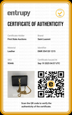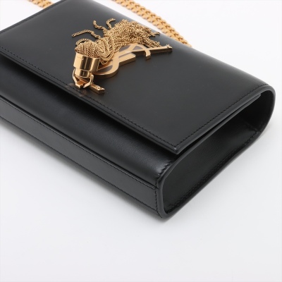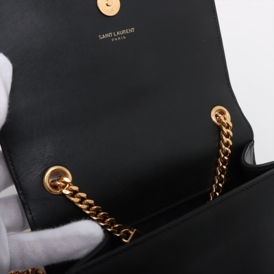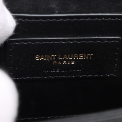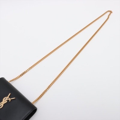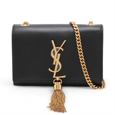 Saint Laurent mini Kate Tassel chain bag in smooth black leather. Featuring gold-toned hardware, and 'YSL' logo plaque with chain tassel. The flap and magnetic button closure opens to a black textile interior with a patch pocket. Approximate dimensions: 17cm(L) x 11.5cm(H) x 4.5cm(D), strap drop 58cm. With Entrupy Certificate of Authenticity. (Pre-owned)