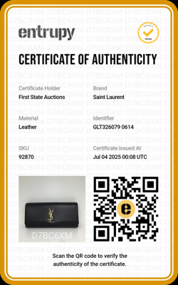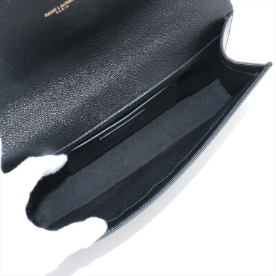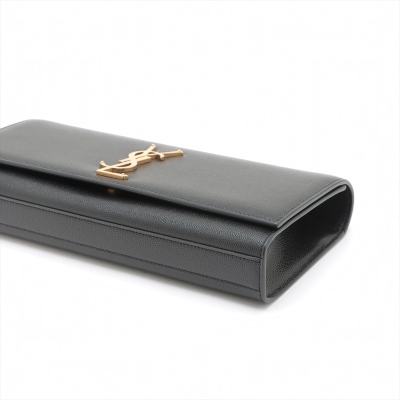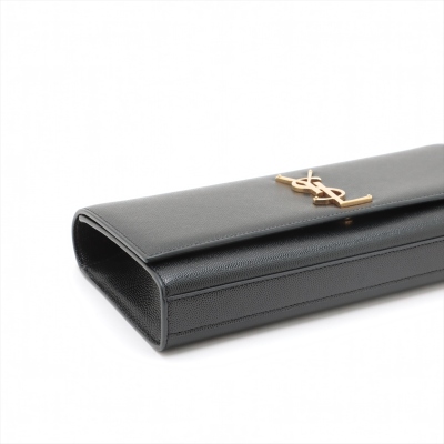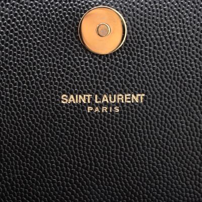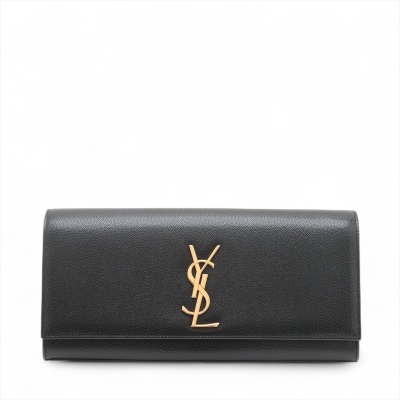 Yves Saint Laurent Kate Clutch in black grained calf-skin leather. Featuring in gold-toned handwear, frontal flap with 'YSL' logo and magnetic closure. The flap opens to an fabric lining interior with a flat pocket. Approximate dimensions: 27cm(L) x 13.5cm(H) x 4.5cm(D). Accompanied by a YSL dust bag. With Entrupy Certificate of Authenticity. (Pre-owned)