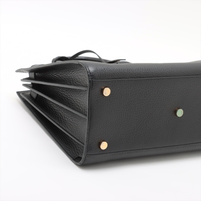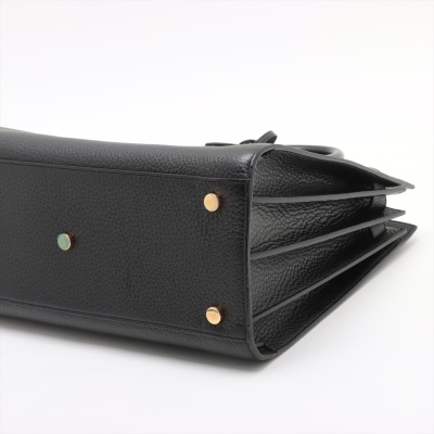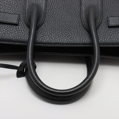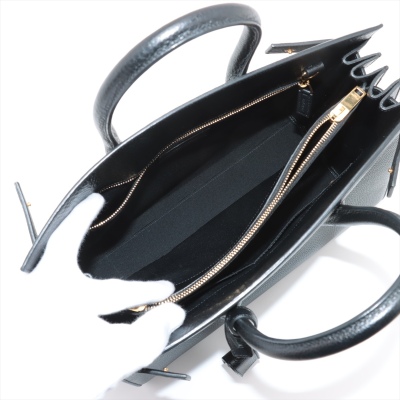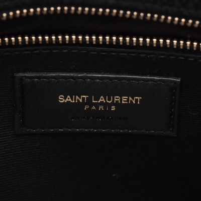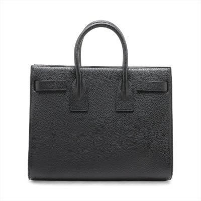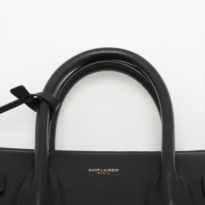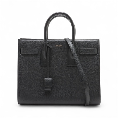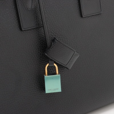 Saint Laurent small Sac De Jour bag in black grainy leather. Featuring antique gold-tone hardware, dual top leather handles, accordion sides, and leather encased padlock. The top opens to a black textile interior with two compartments divided by a zip pocket. Approximate dimensions: 31cm(L) x 25cm(H) x 15cm(D), handle drop 9cm, detachable leather strap drop 50cm. Accompanied by YSL dustbag. NOT accompanied by keys. With Entrupy Certificate of Authenticity. (Pre-owned)