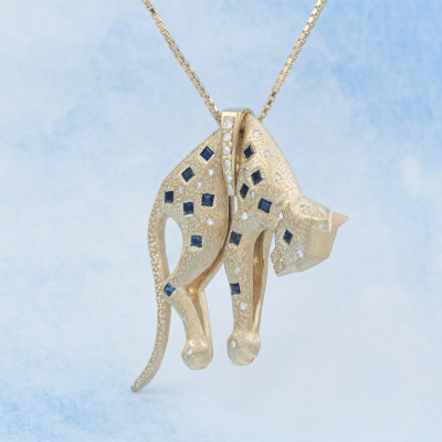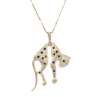 Sapphire & Diamond Gold Panther Pendant 30.2g