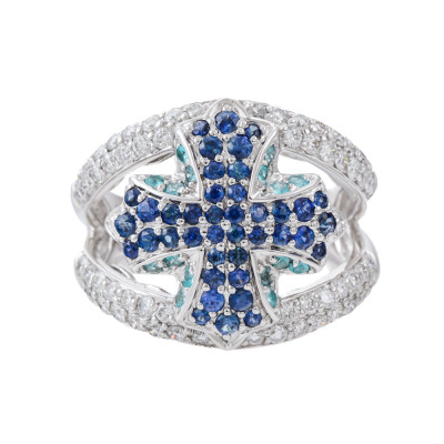 Sapphire, Paraiba Tourmaline & Diamond Ring