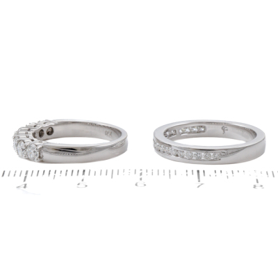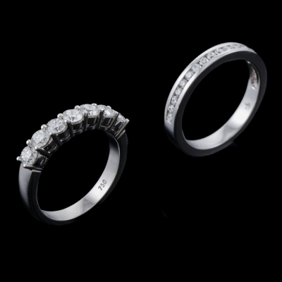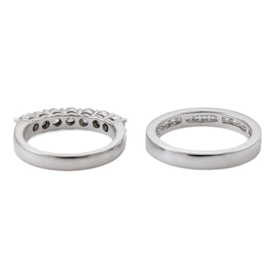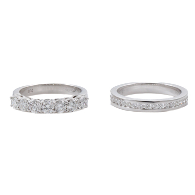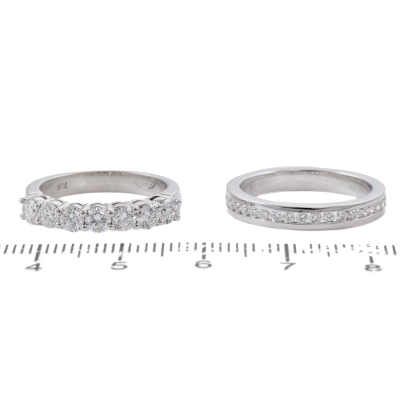 Two Diamond eternity ring set. 1) Diamond eternity ring with seven round Natural Diamonds totalling 0.97ct (Estimated grading H SI). Ring size: K 1/4. Band width: 2.9mm - 3.3mm. 2) Diamond eternity ring with 20 round Natural Diamonds totalling 0.20ct. Ring size: M. Band width: 3.0mm. Both 18ct white gold. Total weight: 9.0g. (Pre-owned)