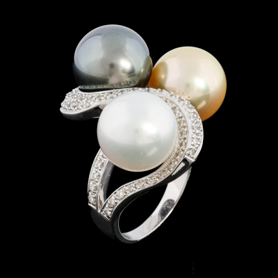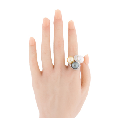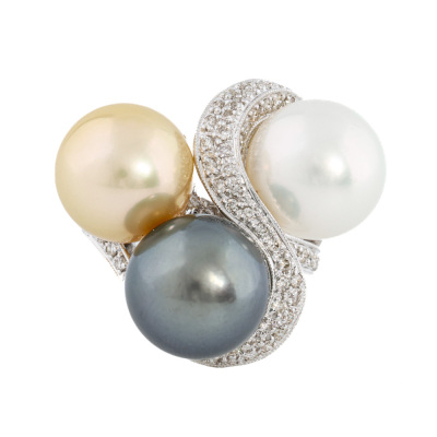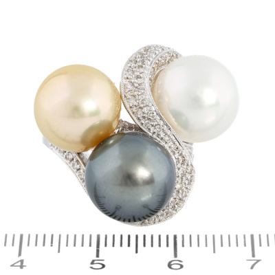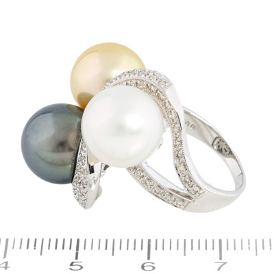 South Sea Pearl, Tahitian Pearl & Diamond Ring