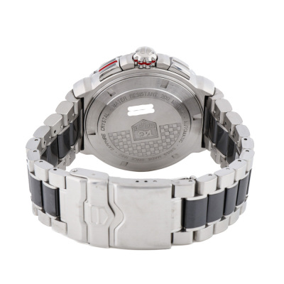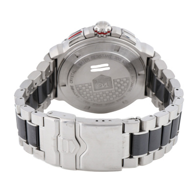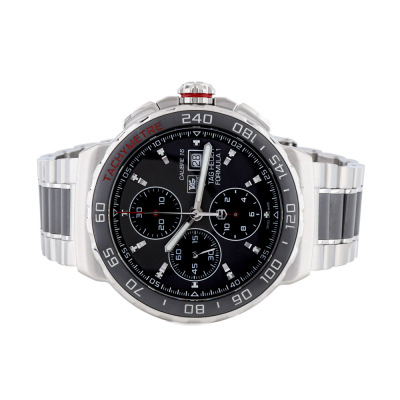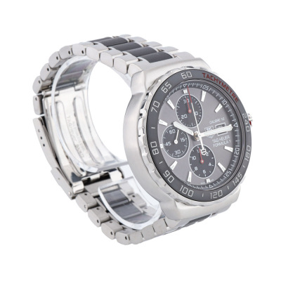 TAG Heuer Formula 1 stainless steel and ceramic automatic mens watch. Grey chronograph dial, date, case diameter: 44mm, wrist size: 18cm, Swiss made. Ref# CAU2011. With TAG Heuer two-tone bracelet and clasp. With Certificate of Authenticity and TAG Heuer box. 3 month FSA warranty