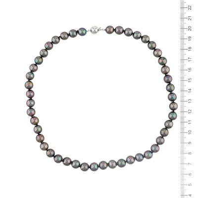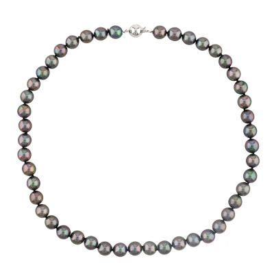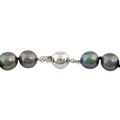 Pearl necklace with Tahitian Pearls of 8.0mm-8.4mm. 14ct white gold 8mm ball clasp. Length: 43.5cm. Weight: 39.4g. (As New)