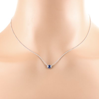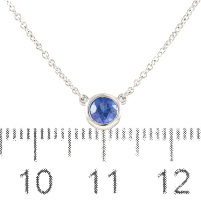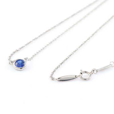 Tiffany & Co. Elsa Peretti Colour by the Yard pendant with a round Natural Blue Sapphire of approximately 0.24ct. Platinum 950 with Taffany & Co. platinum 950 attached chain. Length: 41cm. Weight: 2.6g. (Pre-owned)
