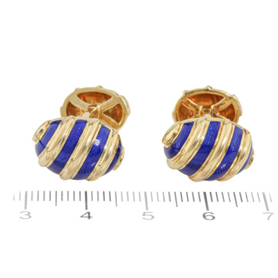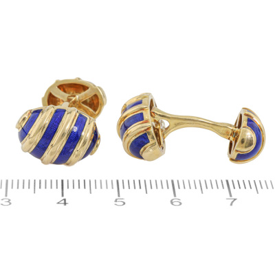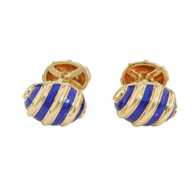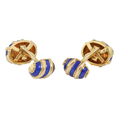 Tiffany & Co. cufflinks. 18ct yellow gold & Enamel. Front motif: 16mm x 11.5mm. Back motif: 13mm x 9.9mm. Weight: 17.4g. With Tiffany & Co. box. (Pre-owned)
