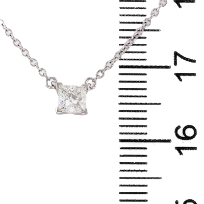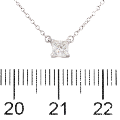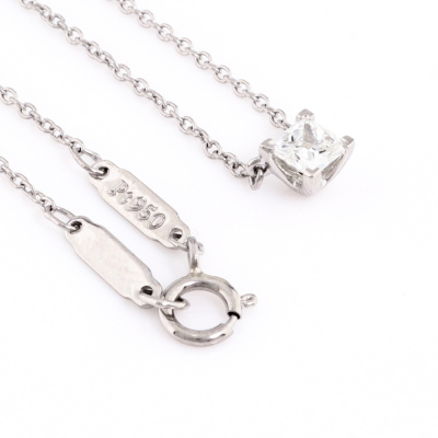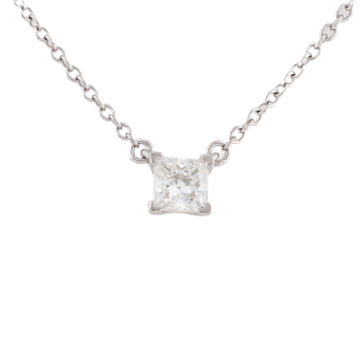 Tiffany & Co. Diamond Solitaire pendant with princess cut Natural Diamond of approximately 0.250ct. Platinum 950 with 43cm Tiffany & Co. Platinum 950 chain. Weight: 2.5g. (Pre-owned)