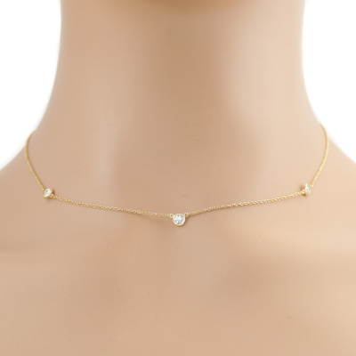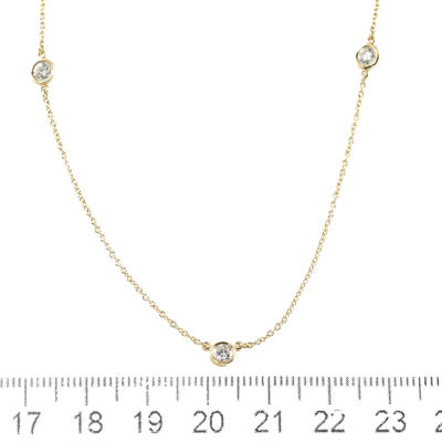 Tiffany & Co. Elsa Peretti Diamonds By The Yard Necklace with 3 round Natural Diamonds totalling 0.42ct (Estimated grading: G VS). 18ct yellow gold. Length: 40cm. Weight: 2.3gg. With Tiffany & Co. box. (Pre-owned)