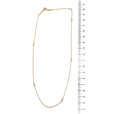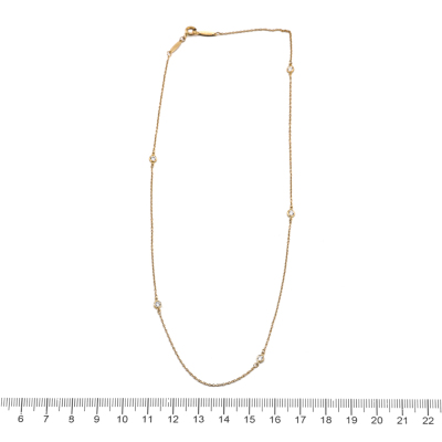 Tiffany & Co. Elsa Peretti Diamonds By The Yard Necklace with 5 round Natural Diamonds totalling approximately 0.35ct (Estimated grading: F-G VS). 18ct yellow gold. Length: 41cm. Weight: 2.1g. With Tiffany & Co. box. (Pre-owned)