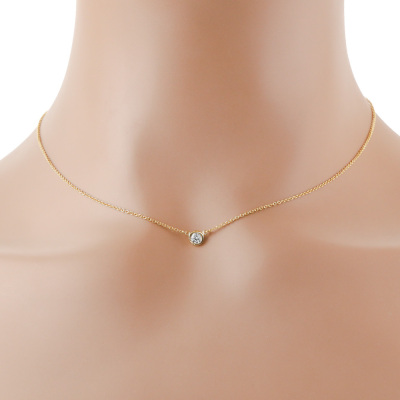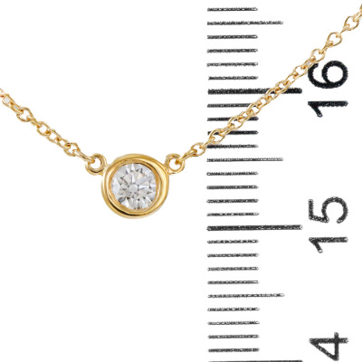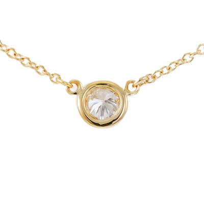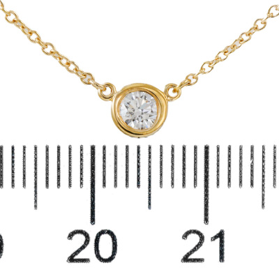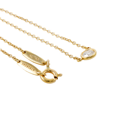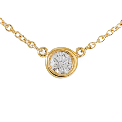 Tiffany & Co. Elsa Peretti Diamonds by the Yard single Diamond pendant with a round Natural Diamond of 0.19ct (with Tiffany & Co. Diamond Certificate graded as I VVS2 #67818261/U01050712). 18ct yellow gold with Tiffany & Co. 18ct yellow gold attached chain. Length: 41cm. Weight: 1.9g. With Tiffany & Co. box.