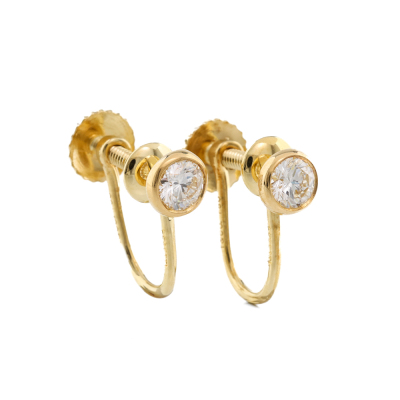 Tiffany & Co. Elsa Peretti Diamonds by the Yard screw back earrings (for non pieced ears) with 2 round Natural Diamonds totalling approximately 0.40cts (Estimated grading: F-G VS). 18ct yellow gold. Weight: 2.1g. (Pre-owned)