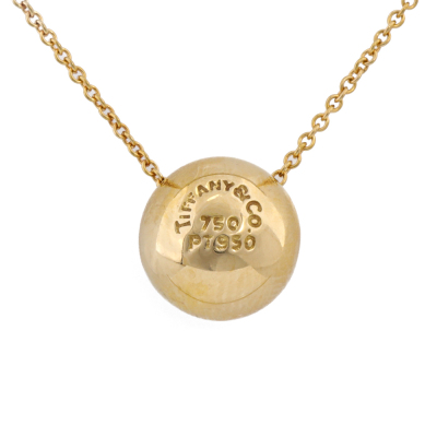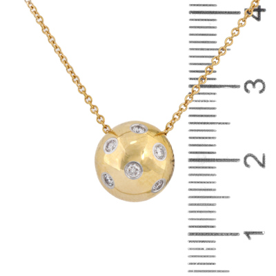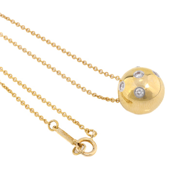 Tiffany & Co. Dots Ball pendant with round Natural Diamonds totalling approximately 0.18ct. 18ct yellow gold with 41cm Tiffany & Co. 18ct yellow gold chain. Weight: 5.1g. (Pre-owned)