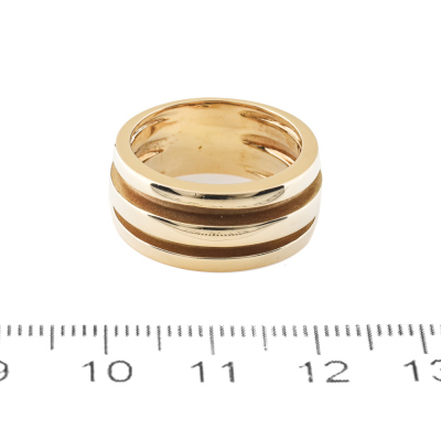 Tiffany & Co. Gold Ring. 18ct yellow gold. Ring size L3/4. Ring resizing is not recommended. Band width: 8.6mm. Weight: 8.9g. (Pre-owned)