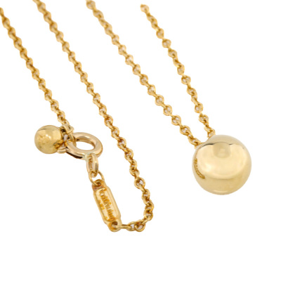 Tiffany & Co. HardWear Ball pendant. Ball motif diameter: 7.7mm. 18ct yellow gold with 18ct yellow gold Tiffany & Co. chain. Adjustable length: 41cm - 46cm. Weight: 4.9g. With Tiffany & Co. box.
