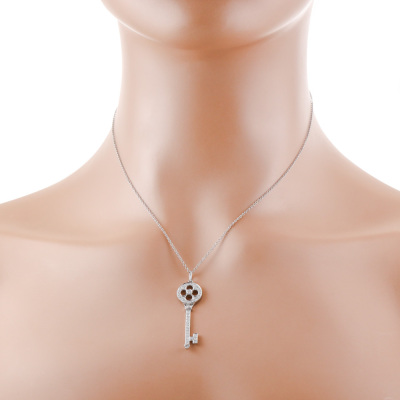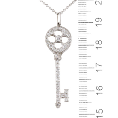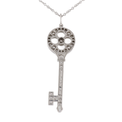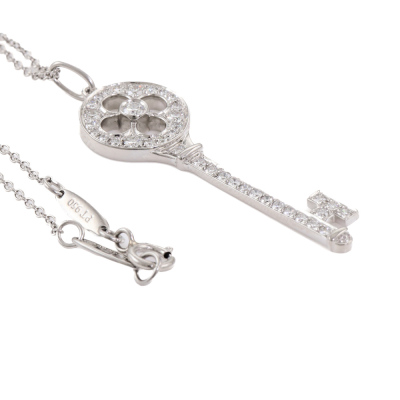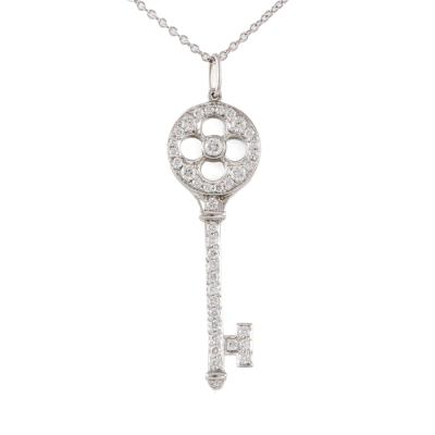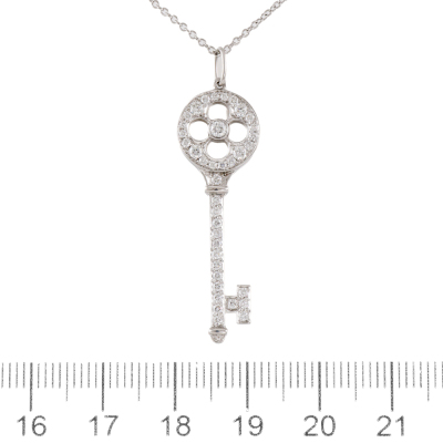 Tiffany & Co. Key Diamond pendant with round Natural Diamonds totalling approximately 0.40ct (Estimated grading: F-G VS). Platinum - 950 with 40.5cm Tiffany & Co. Platinum -950 chain. Weight: 6.2g