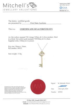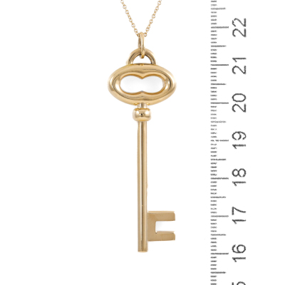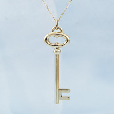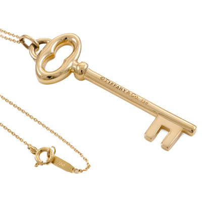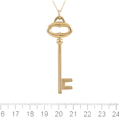 Vintage Tiffany & Co. Key pendant. 18ct yellow gold with Tiffiany & Co. 62cm 18ct yellow gold chain. Key motif size: 5.8cm x 1.8cm including bail. Weight: 15.8g. With Valuation Certificate #420442. (Pre-owned)