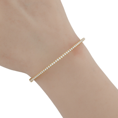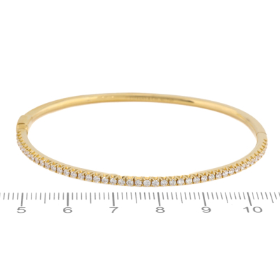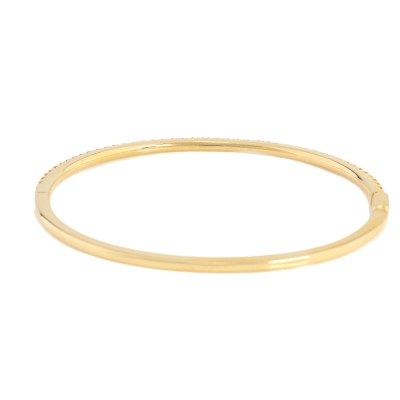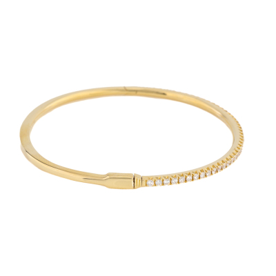 Tiffany & Co. Metro hinged bangle with round Diamonds totalling approximately 0.90ct (Estimated grading: G VS). 18ct yellow gold. Oval shape, Inner circumference 16.5cm. Width: 2.2mm. Weight: 12.9g. With Certificate #5989528139275033. (Pe-owned)