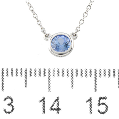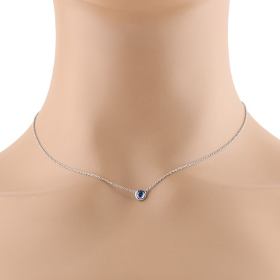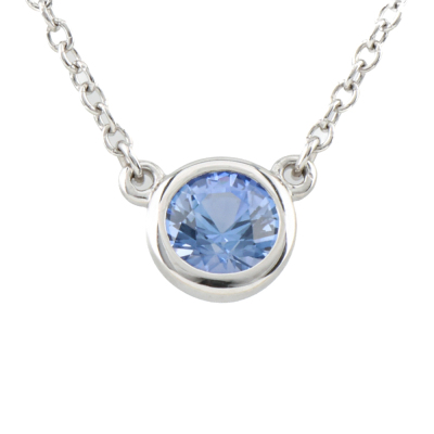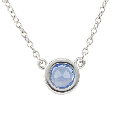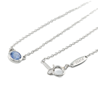 Tiffany & Co Elsa Peretti Sapphire by the Yard single Sapphire pendant with a round Natural Blue Sapphire of approximately 0.40ct. Platinum with platinum attached chain. Length: 41cm. Weight: 2.5g. (Pre-owned)