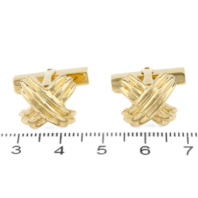 Tiffany & Co. signature cufflinks. Motif size 14mm x 13.2mm. 18ct yellow gold. Circa: 1992