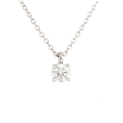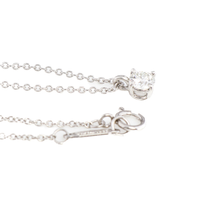 Tiffany & Co Solitaire Diamond pendant with round Natural Diamond of 0.25ct (With Tiffany & Co. Diamond Certificate graded as J VVS1 #74088090/Y04140580). Platinum 950 with 40.5cm Tiffany & Co. platinum 950 chain. Weight: 2.4g. With Tiffany & Co. box. Purchase card dated: 03/12/2023 (Pre-owned)