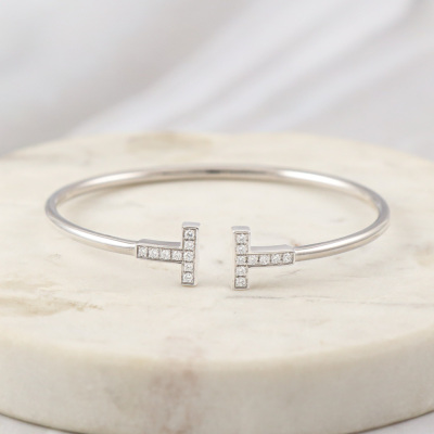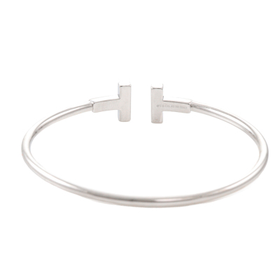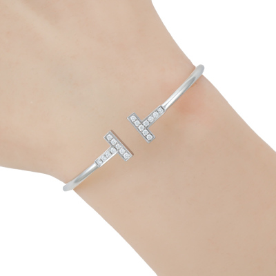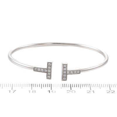 Tiffany & Co. T Diamond Wire bracelet, small size with round Natural Diamonds totalling 0.24ct. 18ct white gold. Inner circumference: 15cm. Width: 2.5mm. Made in Italy. Weight: 8.1g. With Tiffany & Co box. With certificate #1986211472879726.