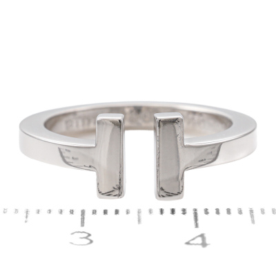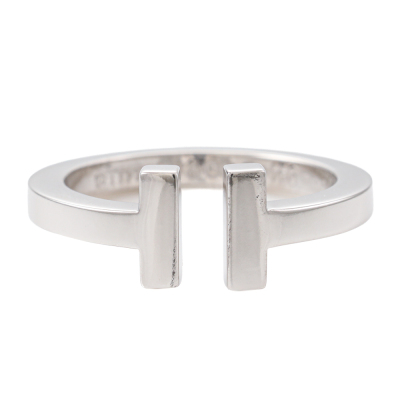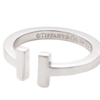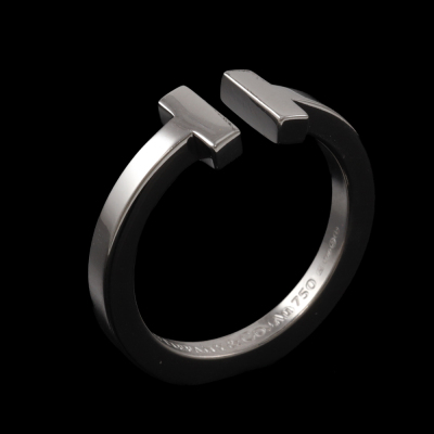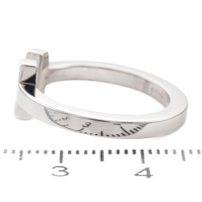 Tiffany & Co T Square ring. 18ct white gold. Ring size O - ring resizing not recommended. Band width: 2.5mm. Weight: 7.0g. With Tiffany & Co Box. (Pre-owned)