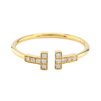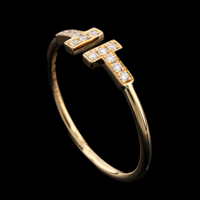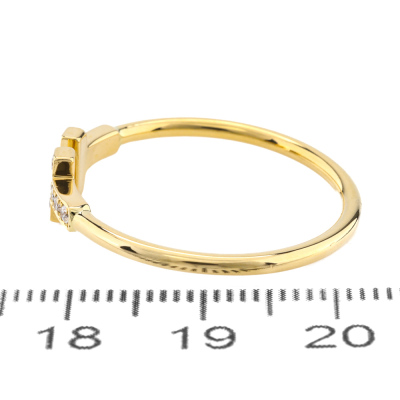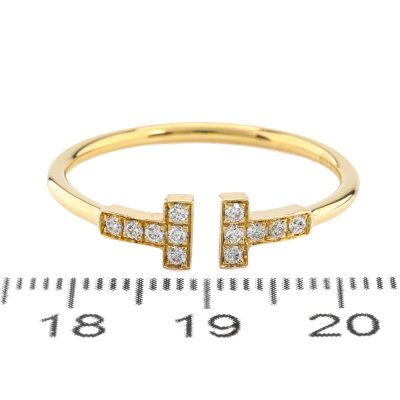 Tiffany & Co. T Wire Diamond ring with round Natural Diamonds totalling 0.13ct. 18ct yellow gold. Made in Italy. Ring size W 1/2 - ring resizing is not recommended. With Tiffany & Co box. Weight: 3.0g. (Pre-owned)