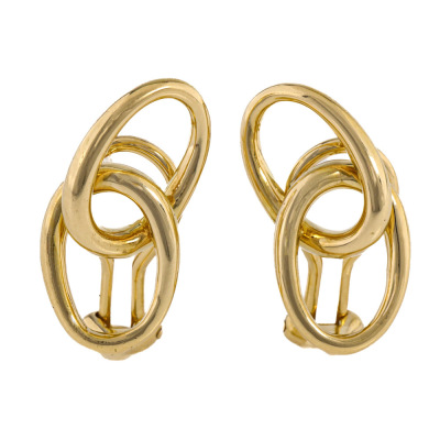 Tiffany & Co. Tiffany Peretti Double Loop clip-on Earrings (for pierced ears). Dimensions: 2cm x 1cm. 18ct yellow gold. Weight 8.5g.