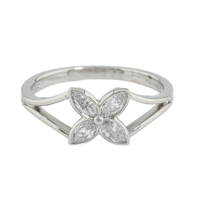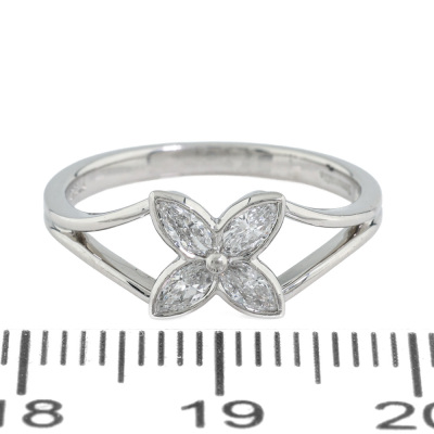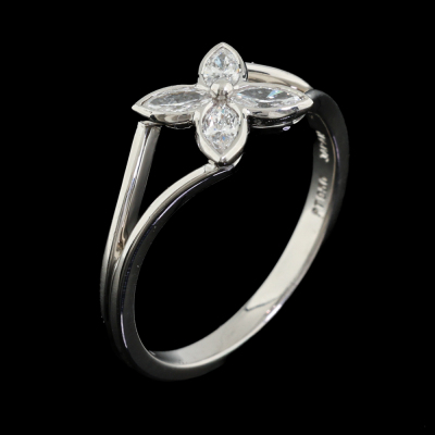 Tiffany & Co. Victoria Diamond ring with 4 marquise cut Natural Diamonds totalling approximately 0.24ct. Platinum - 950. Ring size I 1/2 - ring resizing is not recommended. Made in Japan. Circa: 1997. Weight: 3.0g. With Tiffany & Co box. (Pre-owned)