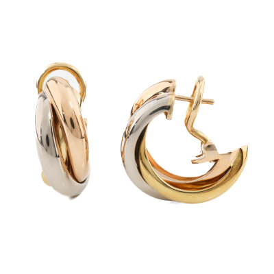 Tri-tone hoop earring (for pierced ears). 18ct yellow, white and rose gold. Weight: 9.8g. (Pre-owned)