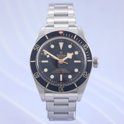 Tudor Black Bay Fifty-Eight stainless steel automatic mens watch. Black dial, date, case diameter: 39mm, wrist size: 20.5cm, Swiss made. Ref# 79030N. With Tudor stainless steel bracelet and clasp. With Certificate of Authenticity, Tudor International Guarantee card dated 17/06/2020 and Tudor box. Balance of 5 year Tudor manufacturer warranty applies. Weight: 143.9g (Pre-owned)