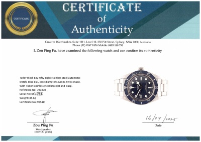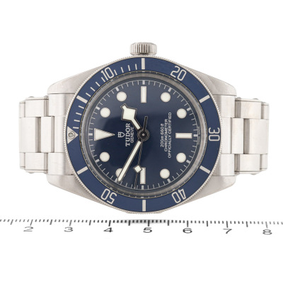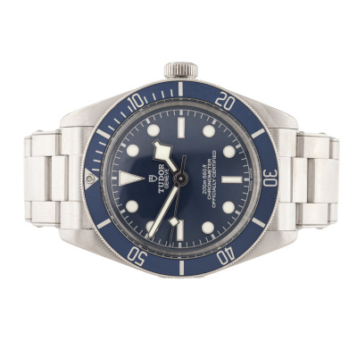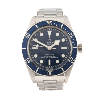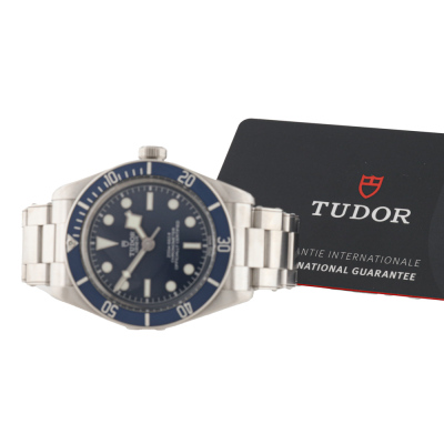 Tudor Black Bay Fifty-Eight stainless steel automatic mens watch. Blue dial, case diameter: 39mm, adjustable max wrist size: 19.5cm, Swiss made. Ref# 79030B. With Tudor stainless steel bracelet and clasp. With Certificate of Authenticity, Tudor International Guarantee dated 08/06/2021, spare Tudor blue soft touch strap with clasp and Tudor box. Balance of 5 year Tudor manufacturer warranty applies. (Pre-owned)
