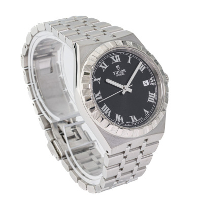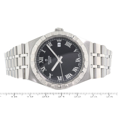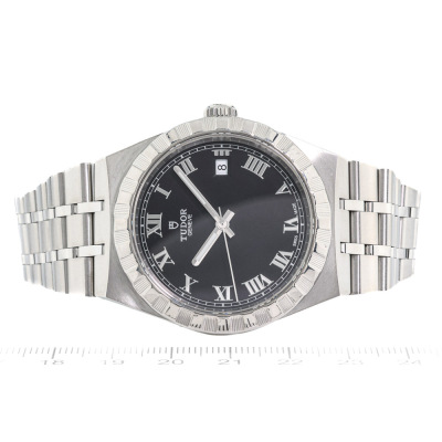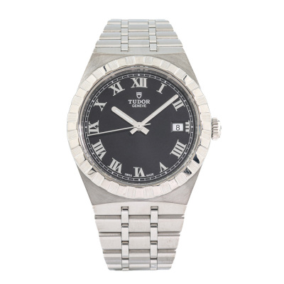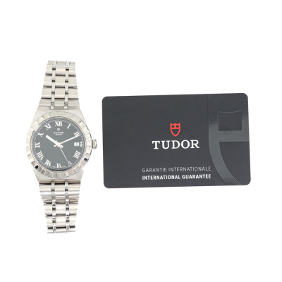 Tudor Royal stainless steel automatic mens watch. Silver dial, date, case diameter: 38mm, writs size: 19cm, Swiss made. Ref# 28500. With Tudor stainless steel bracelet and clasp. With Certificate of Authenticity and Tudor International Warranty card dated 04/06/2024. Balance of 5 year Tudor manufacturer warranty applies. Weight: 136.7g (Pre-owned)