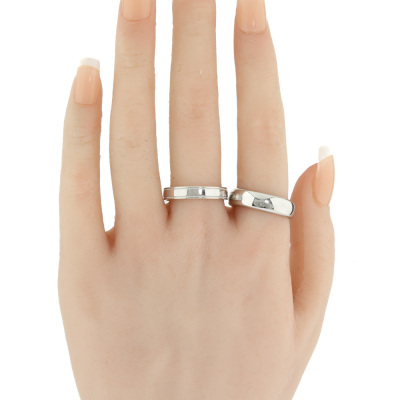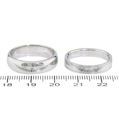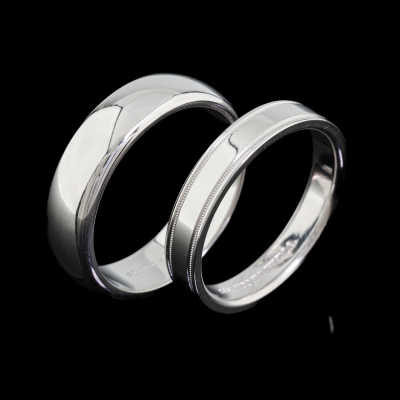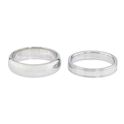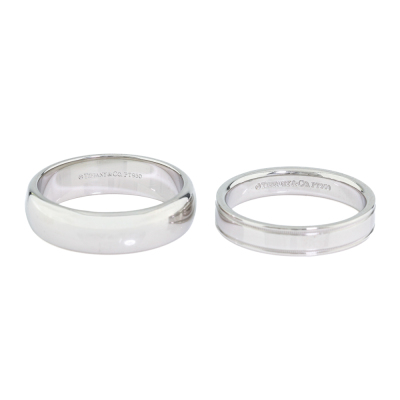 Two Tiffany wedding bands. Both Platinum-950. Ring sizes: Q and S. Band width: 4.1mm and 5.9mm. Total weight: 20.6g. (Pre-owned)