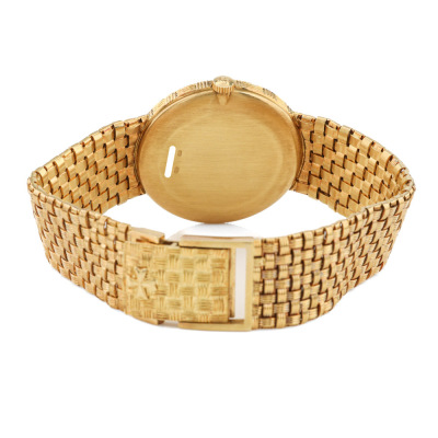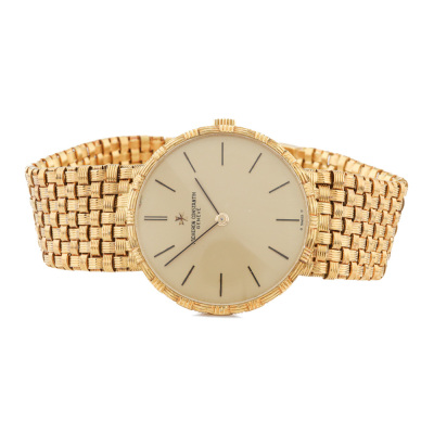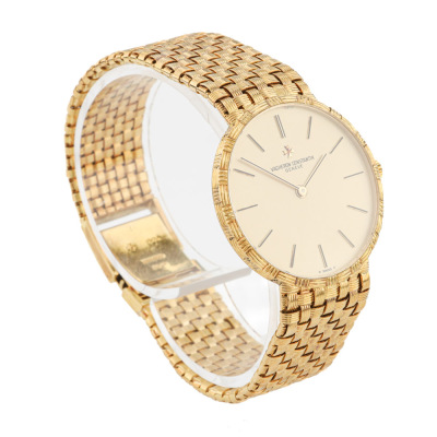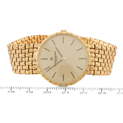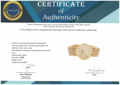Vacheron Constantin Mesh Doll 18ct yellow gold manual winding watch. Gold dial, approximate case diameter: 31cm, max wrist size: 17cm, Swiss made. Ref# 39015. With Vacheron Constantin 18ct gold mesh bracelet and clasp. With Certificate of Authenticity. 3 month FSA warranty. (Pre-owned)