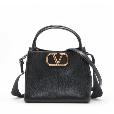 Valentino Garavani Alltime medium bag in grainy calfskin. Featuring antique gold-toned hardware, dual leather handles, logo signature at front. The top with magnetic closure opens to black suede lining interior with a zipper pocket. Approximate dimensions: 25cm(L) x 21cm(H) x 16cm(D), 11cm handle drop and 69cm strap drop, adjustable. Accompanied by a Valentino dust bag. With Entrupy Certificate of Authenticity. (Pre-owned)