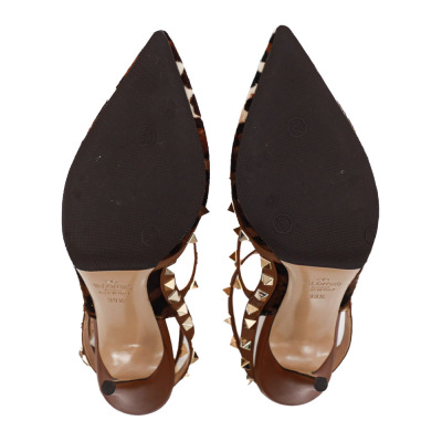 Valentino Garavani Rockstud Ankle Strap 100. Size EU39.5. Colour: Multicolour. Heel Height: 100mm. Material: Pony Hair/Leather. Made in Italy. Aftermarket sole protector added, condition underneath unknown. With Valentino Garavani box. With Valentino Garavani protective bag. (Pre-owned)*