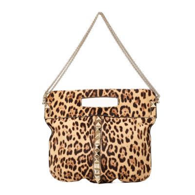 Valentino Va Va Voom Tote in leopard print calf hair. Featuring gold-toned hardware, and hardware spikes on front of bag. The magnetic closure opens to a beige textile interior with patch and zip pockets. Approximate dimensions: 35cm(L) x 33cm(H), sliding chain strap drop 30cm. With Entrupy Certificate of Authenticity. (Pre-owned)*
